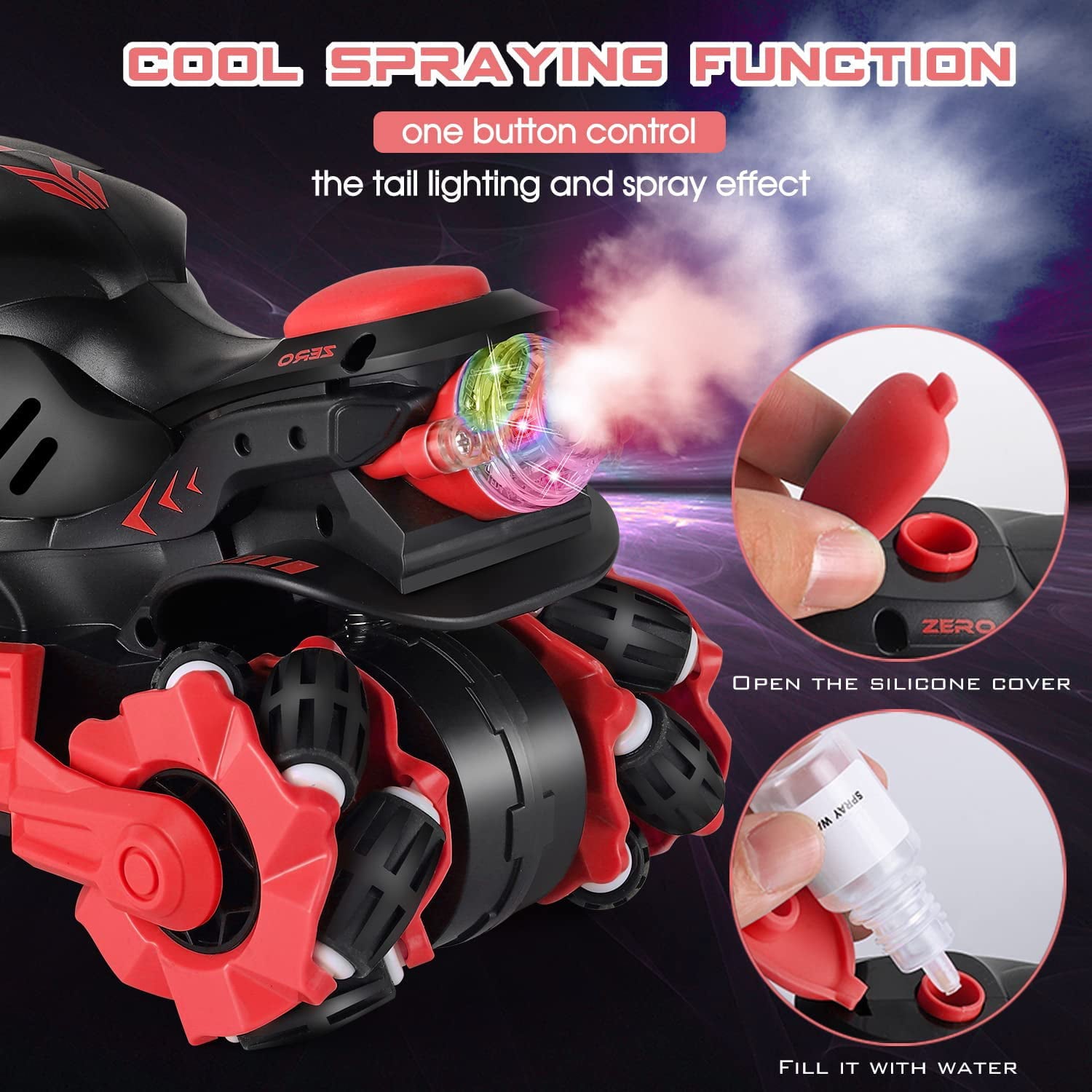 KIVDIT Remote Control Car RC Car Toy 360° Spin Flip RC Stunt Car with Light and Cool Spray, Ideal Gift for Kids(Red)