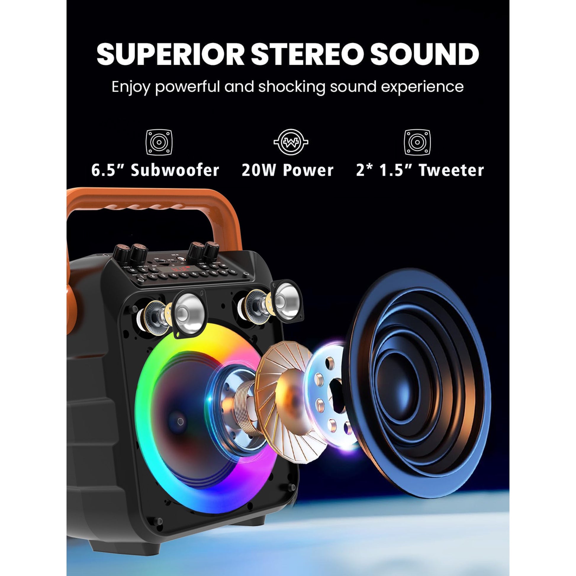 ???? Funny and Portable Party Speaker : The karaoke machine for party is designed with a portable carrying handle, making it easy to take anywhere. You can enjoy your favorite music anytime, anywhere. Designed for fun, the party speaker makes the nice addition to any party or gathering, the good partner for any event.
